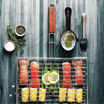 Grill the thickest and the thinnest of foods with this ultra stretchy, unique, oversized grilling basket that has a spring-like design. The heavy-gauge chromed steel basket flexes and molds to hold food securely in place. When you’re not using this must-have grill tool, it locks together for safe and easy storage. Perfect for grilling fish, corn, fillets, chops, and other delicate fruits, vegetables and breads. Say no more to lost food down the grill grates.