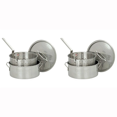 Make your next backyard get together even tastier with the 2-Pack Bayou Classic’s 10-Quart Stainless Steel Fry Pot and Basket. This fry pot set is made out of durable stainless steel, so you’ll be able to use it longer. With heavy-duty, riveted handles you can securely handle the hot fry pot. It’s perfectly equipped for frying fish, shrimp, chicken, hush-puppies, fries, and more. When you don’t want something fried you can take out the basket and make soups, stews, or chili. Whichever way you choose to use it, you’ll be sure to have a tasty finish with this 2-Pack Bayou Classic Fry Pot and Basket set.