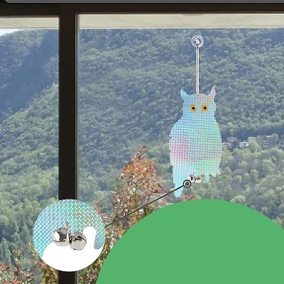 Introducing BIRD BLINDER – the perfect solution to keep birds away from your home! Our 16-inch hanging owl with holographic diamond pattern emits flashes to scare birds, while the hanging bells provide sound deterrents to improve bird control. Easily hang BIRD BLINDER anywhere outdoors, such as your patio, garden, near a pool, mailbox, and more. With BIRD BLINDER, you can keep your worries away, no more bird poop or window strikes. Plus, you can keep birds safe from windows and pets with the two included owls. Get BIRD BLINDER today for a safe and worry-free home!