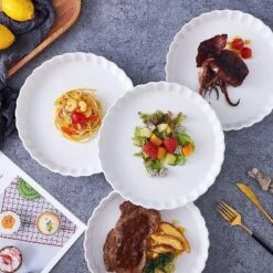 Bruntmor’s set of 4 matte ceramic pie pan / dinner plates provide a unique pattern design and bright color for easy daily use. The high-quality ceramic resists flaking or chipping, is oven safe to 500°F, and is easy to clean. The non-slip pearl pattern edges offer a special touch of elegance to your meal. This multi-functional deep pie pan is suitable for all kinds of pies, baking dishes, and serving plates. Enjoy a unique baked good experience with Bruntmor!