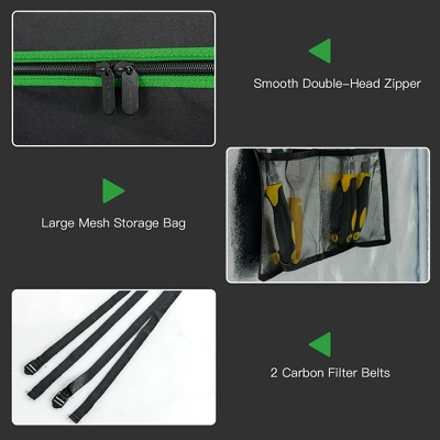 Costway 32”x32”x63”Mylar Hydroponic Grow Tent W/Observation Window & Floor Tray GrayBlack