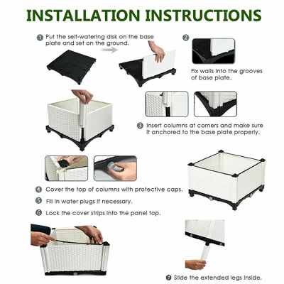 The planter bed is a good place to start developing your skills and experience the joys of growing your own plants. Constructed of high-density polyethylene (HDPE), the planter box is solid and weather-resistant to withstand the change of weather. There are 4 planting boxes for you to setup in different shape. The height of garden bed is about 17 inches (include brackets) which can protect your plants from garden animal and pests. With our planter, you don’t have to bend over or kneel for long time to grow plants and reduce pain on your back and knee. Elevated garden bed is designed with self-watering disk and drain holes to provide extra space for reserving water and help plants to absorb entirely. It can prevent plant from rot or over-drying effectively. Not only can these garden beds with rattan style help you grow plants, but they also are nice decorations in your outdoor space. It is perfect to put them in your patio, garden and balcony.