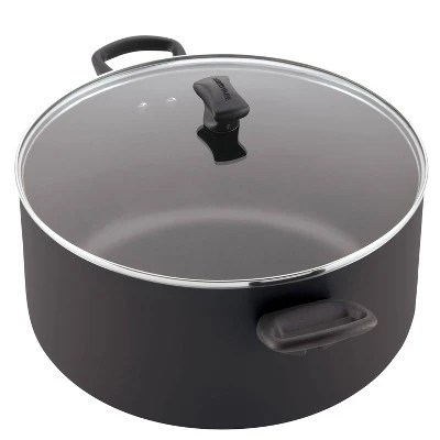 Aluminum construction helps this Farberware® stockpot heat quickly and evenly from base to rim, and the long-lasting nonstick interior provides beautiful food release for seared sirloin cubes, browned chicken, and all the other delicious ingredients in homemade soups and stocks. The capacity is generous enough for a large batch of the family’s favorite stew or soup for a local picnic or potluck. A shatter-resistant glass lid helps hold the heat and moisture inside the covered pot and keeps the cooking visible for reducing broths and other liquids.