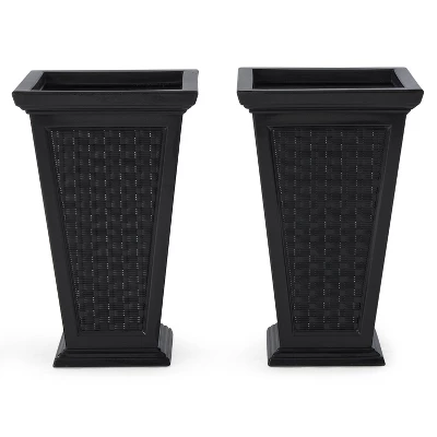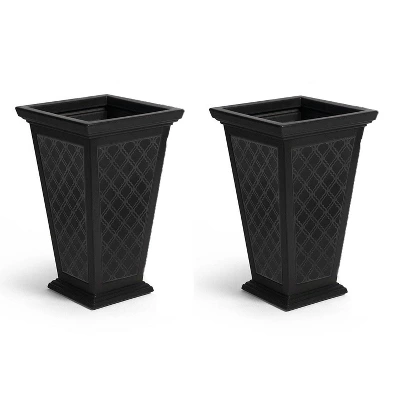 Enjoy the classic look of a tapered pedestal planter with the modern convenience of self-watering with the FCMP Outdoor Resin 24″ Self-Watering Pedestal Taper Planter Set.These planters are self-watering, so they do all the work for you. A reversible liner allows you to drill drainage holes if you prefer to display a potted plant elevated in this pedestal planter.Each planter stands 24 inches tall and features a Moroccan-inspired design. High grade recycled resin that is BPA-free and UV inhibited means they will not fade in sunlight.Refresh your front porch or patio and elevate your style with the durability and elegance of the Resin 24″ Self-Watering Pedestal Taper Planter Set by FCMP Outdoor.