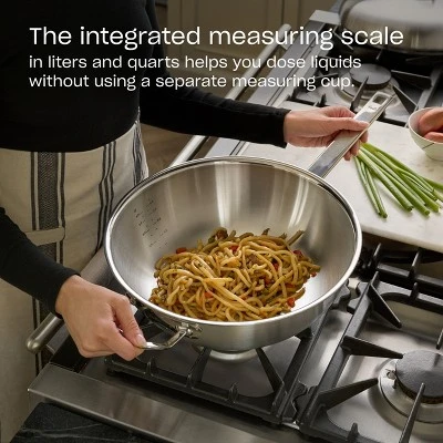 The chef-inspired laser-etched measurement markers allow you to dose liquids without measuring cups, while the broad pouring rim makes it easy to pour liquids without drips and spills. With German quality and craftsmanship, this stainless steel stock pot is also dishwasher-safe, durable, and rivet-free so you can pass it on to the next generations.