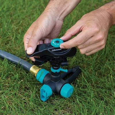 The grass in your yard will be healthy, happy and hydrated with this Impact-Step Spike Sprinkler from Gilmour. This sprinkler has an easy-to-move plastic design that has a metal spike on the bottom for secure placement, and it allows you to adjust how the water is being projected so you can get the water where your lawn needs it most. Simply attach this spike impact-step sprinkler to your hose and move it around your yard as needed to water up to 5,800 square feet of grass.
