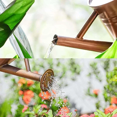 Homarden presents an elegant and durable copper watering can for effortless plant watering. Made with high-quality galvanized steel, it prevents rusting and is suitable for both indoor and outdoor use. Its removable spout and two handles make it an easy-to-use plant watering can, while the free-standing fill hole allows quick refilling. Its attractive unique copper design and high quality paint make it the perfect decorative and gifting item.