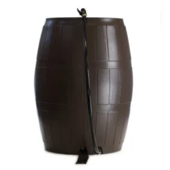 Algreen Products Castilla 50 Gallon BPA Free Roto Molded Plastic Rain Water Collection Barrel With Shut Off Nozzle And Screen Guard, Brownstone