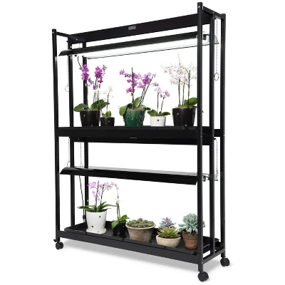 This ultra-bright grow light is simply the best for indoor gardening. Each fixture has three full-spectrum LED lights to ensure sure the fastest, healthiest growth and strongest and sturdiest plants — including orchids. Three bulbs means 50% more light than 2-bulb fixtures, and that extra brightness encourages many plants to progress to the flowering and fruiting stage! The rugged frame is made from powder-coated aluminum. Two light fixtures; each holds three 4′ LED light tubes (included). About our LEDs: Our product development team engineered these LED light tubes to meet the exacting needs of plants. They deliver full-spectrum light with an additional spike of blue light to stimulate stronger root growth and enhance photosynthesis. Long-lasting LED tubes won’t shatter like glass bulbs and they’re mercury-free so, unlike fluorescent bulbs, there’s no need for special disposal.