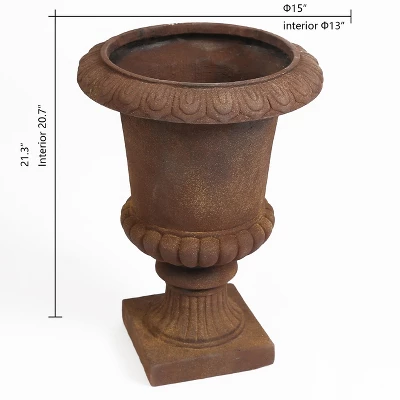 - Classic urn planter style in a rustic brown finish for a fresh country style