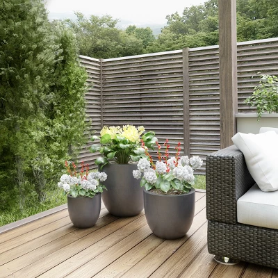 - This set of 3 small, medium, and large outdoor planters allow you to choose the size that best suits each of your plants so they will be their most healthy and beautiful
