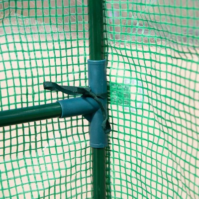 - Walk-In Greenhouse: This outdoor greenhouse lets you extend the grow season even into mild winters. Control heat, and humidity, and stop sun damage by blocking harmful UV. If it’s green, you can house it: vegetables, herbs, flowers, succulents, and saplings. Protect plants from cold, wind, rain, and animals.