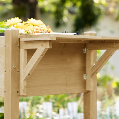Raise your green thumb with Outsunny. This eight-grid garden bed lets you separate plants. Flowers, herbs, and vegetables make the most of your area when you go vertical. This planter box features 360-degree wheels you can use to push it in any direction. Use the bottom shelf and table to place plant pots, get garden tools, or display decorations. The water-draining fabric is breathable, and together with the drainage holes, they stop soil leakage and help plants have healthy water levels.