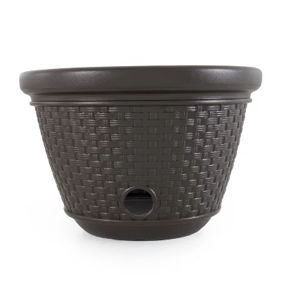 If you’re tired of seeing a messay gende hose, then reel it in. Organizing your hose doesn’t have to be a task. Keep your hose out of sight, but not out of mind with this attractive wicker pot. The Suncast Resin Hose Pot keeps up to 100-feet of 0.625-inch standard vinyl hose out of sight and conceals standard vinyl hoses. The drain holes in base to release trapped water to protect your hose by preventing mold or mildew. The heavy-duty resin construction is easy to maintain, while the lightweight construction makes this pot easy to move around. The classic wicker design is versatile and fits with most decors. This simple and convenient design makes storing your hose easy. This hose pot is designed with a convenient circular opening for hose connection to water supply.