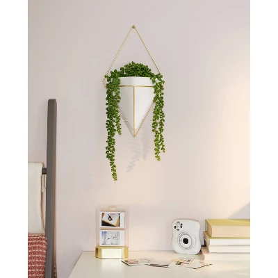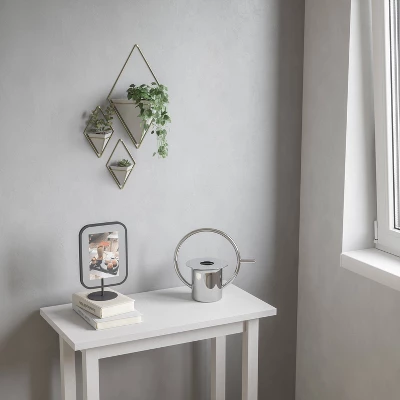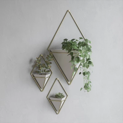 Trigg wall vessels are an exciting way to keep small indoor plants or other items, such as pens, pencils or even makeup accessories, on display and close at hand. Featuring a molded resin vessel and plated wire frame, these decorative vessels come with mounting hardware and are easy to hang. You can also group together multiple sets to create a mini indoor wall garden for your succulents or other small plants.
